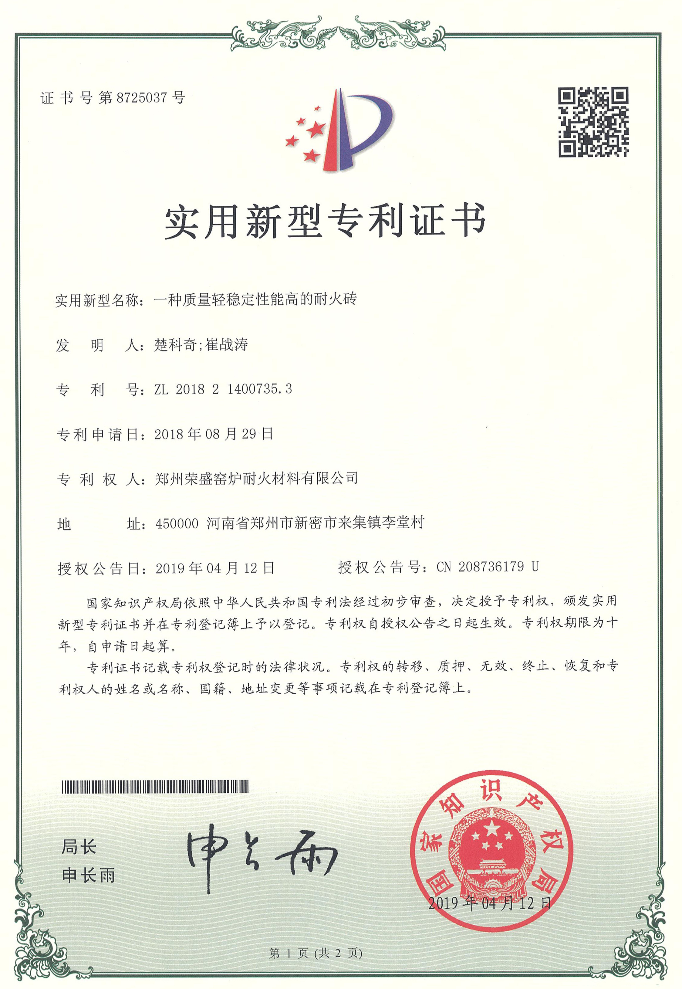 榮盛致力于耐火新材料、新技術(shù)、新產(chǎn)品的開(kāi)發(fā)和推廣應(yīng)用,是國(guó)家高新技術(shù)企業(yè)。目前已擁有鄭州市高溫耐火材料工程技術(shù)研究中心、鄭州市循環(huán)流化床鍋爐耐火材料工程技術(shù)研究中心2個(gè)市級(jí)工程技術(shù)研究中心。